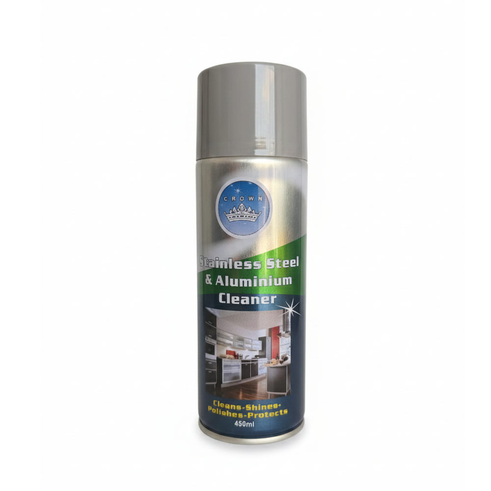 Crown Stainless Steel & Aluminium Cleaner is specially formulated to clean, shine, and protect stainless steel and aluminium surfaces. It effectively removes grease, fingerprints, stains, and smudges while restoring a brilliant, streak-free finish. Ideal for use on kitchen appliances, sinks, fixtures, and other metal surfaces in homes and commercial environments