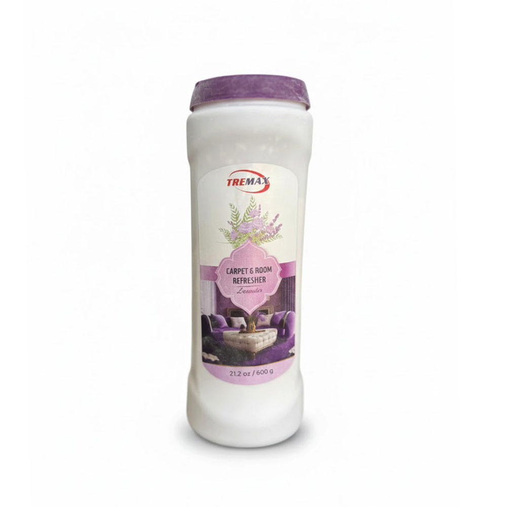 TREMAX Carpet & Room Freshener Powder with Lavender fragrance helps eliminate unpleasant odors while leaving carpets and rooms smelling fresh and clean. Its effective deodorizing formula refreshes carpets, rugs, upholstery, and indoor spaces, making it ideal for homes, offices, hotels, and commercial environments.